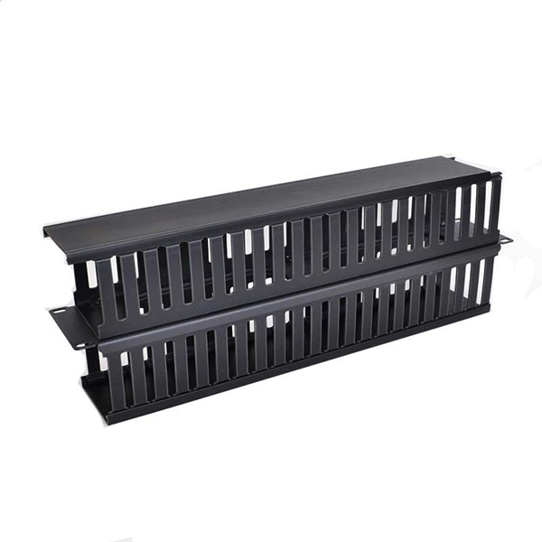 These Horizontal Duct Cable Managers are designed for use with any standard size open frame racks, wall enclosures and floor enclosures. They have a single-sided finger-duct design with a removable cover lid.