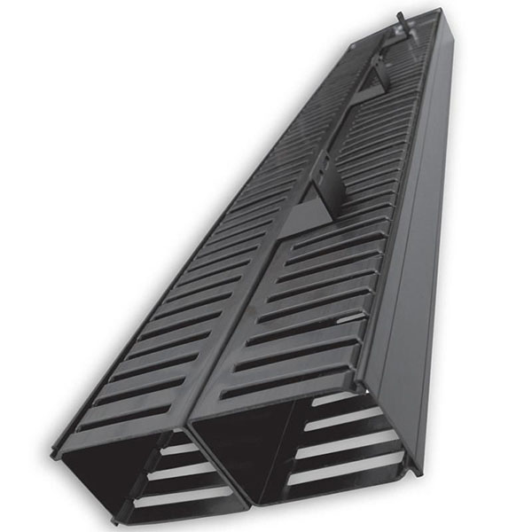 | Vertical Dual Sided Finger Duct Style Cable Manager, Floor Enclosure Style, Black, opening 1.6”W x 4”H x 72”L | VF-07-100 |
